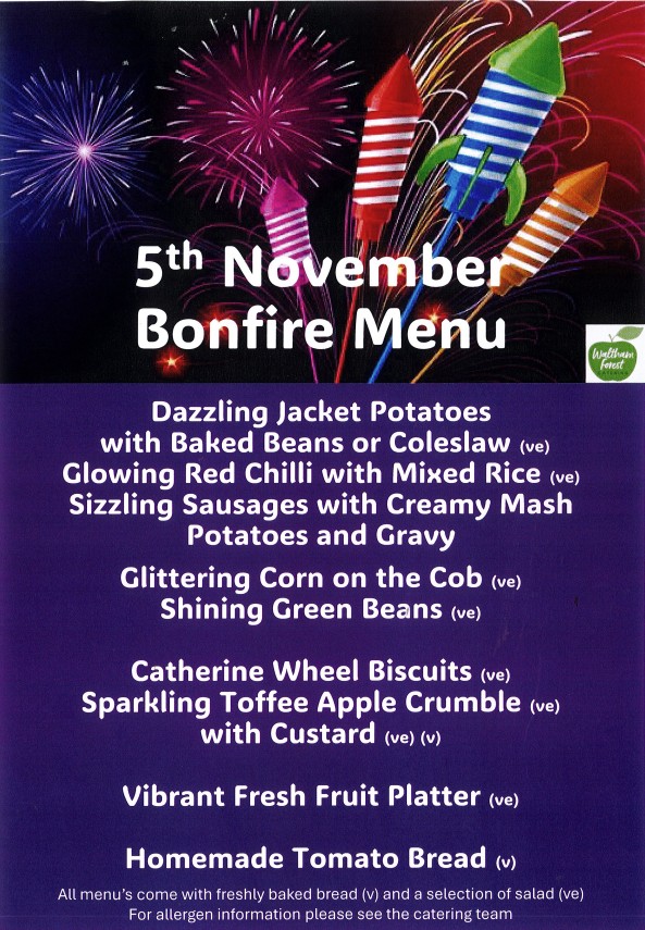 Bonfire Night Lunch Menu - Wednesday 5th November