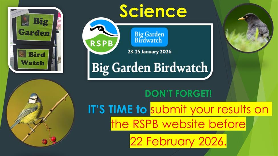 Science - Big Garden Bird Watch 23 - 25 January 2026
