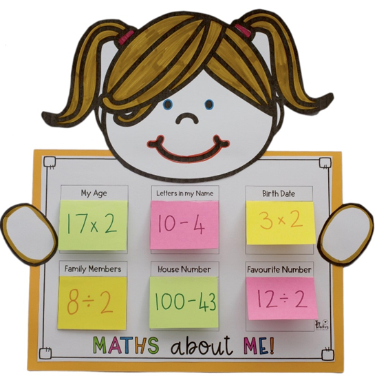 Use the A3 sheet (portrait) to design a poster on All About Me Maths!