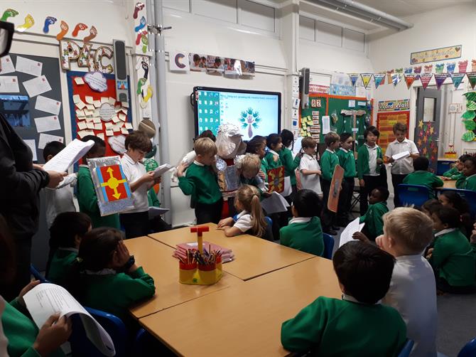 Over the last two weeks we've been reading,writing and performing playscripts. On Tuesday we performed a roman play to Year 2. Miss Lloyd was very impressed, especially with the Soldiers' chanting! We were also able to bring our extra Roman soldier created by Max F! Sadly he'd been injured and needed help to walk, but he did just about manage it!!! If you're intrigued, come and view our new class member.He tends to 'hang out' in the book corner.........