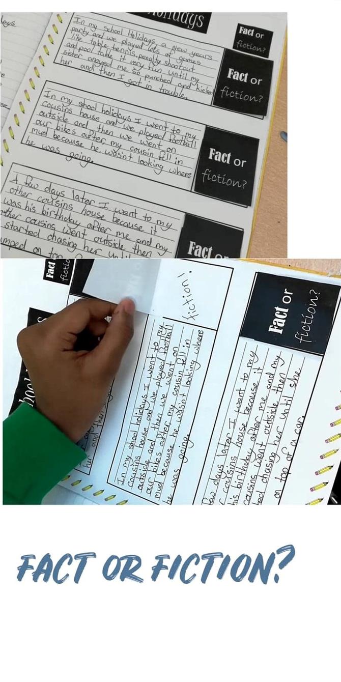 SLIDE 2: Last week in English we looked at recounts, what they are and why we use them. We played a game called FACT or Fiction where students wrote 3 things that they did in the holidays but the trick was that one of them wasn’t actually true but completely made up!