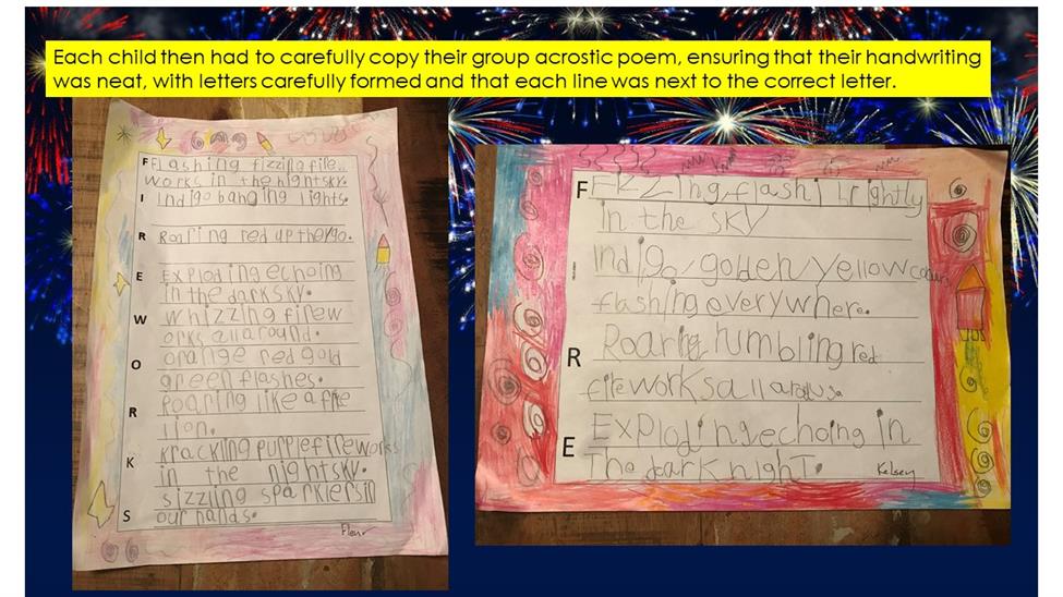 Thank you Ms Barratt for your lovely comment. I am so pleased that you loved seeing all the wonderful work. All this work was done over 1 week in their English lessons & I think it demonstrates how hard they worked. The performance of their poems was a real high light.