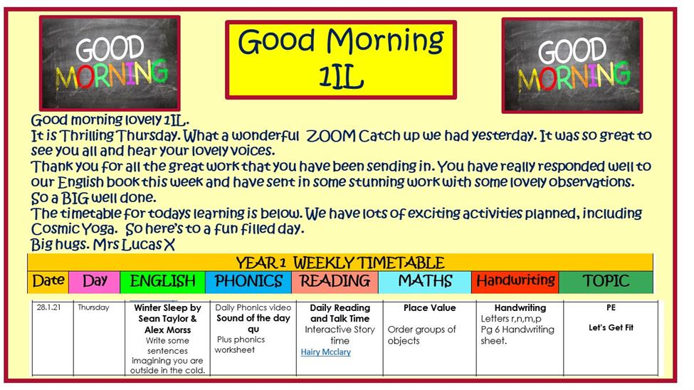 Good morning Iris. Thank you so much for your message. I love receiving them everyday. Your day ahead sounds fab - a real mixture of work and play. Super! I too wish I was at school with all of you. Missing just being with you and seeing you all everyday. Have a great day. Lots of love Mrs LucasX