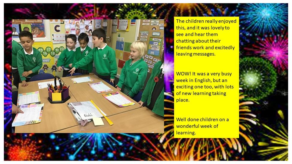 So lovely to see all the photos of them performing. Everyone's writing is really coming on well too :)