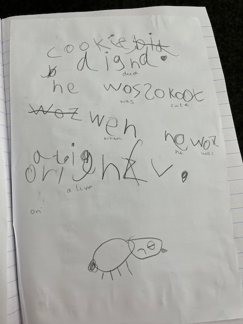 Never one to miss an opportunity for writing, we have started a memory book about Cookie. Here are some of the memories the children have recorded.